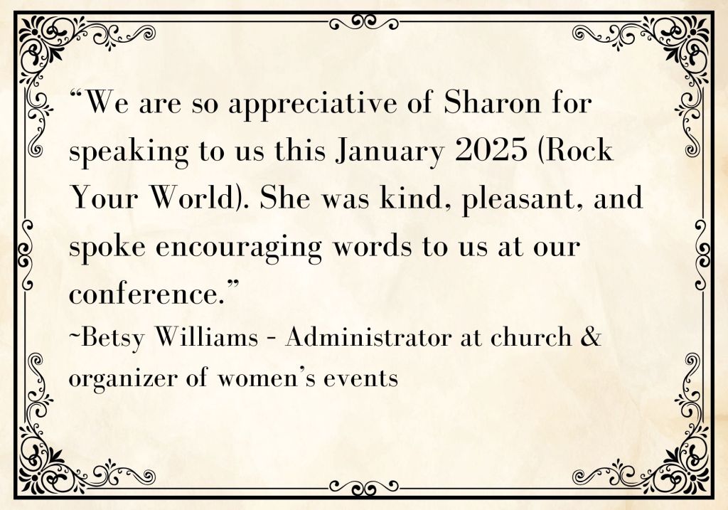 Hi! I’m Sharon Wilharm, an author, speaker, Bible teacher, podcaster, and radio host. In my former life I was a filmmaker.